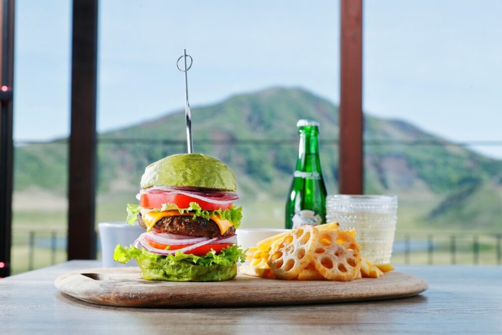 中でも人気なのは、阿蘇のブランド牛「あか牛」を贅沢に使用したハンバーグやハンバーガーです。ジューシーながら脂っこくなく、阿蘇の雄大な自然を感じさせる味わいが特徴です。あか牛ステーキやローストビーフのプレートも好評です。