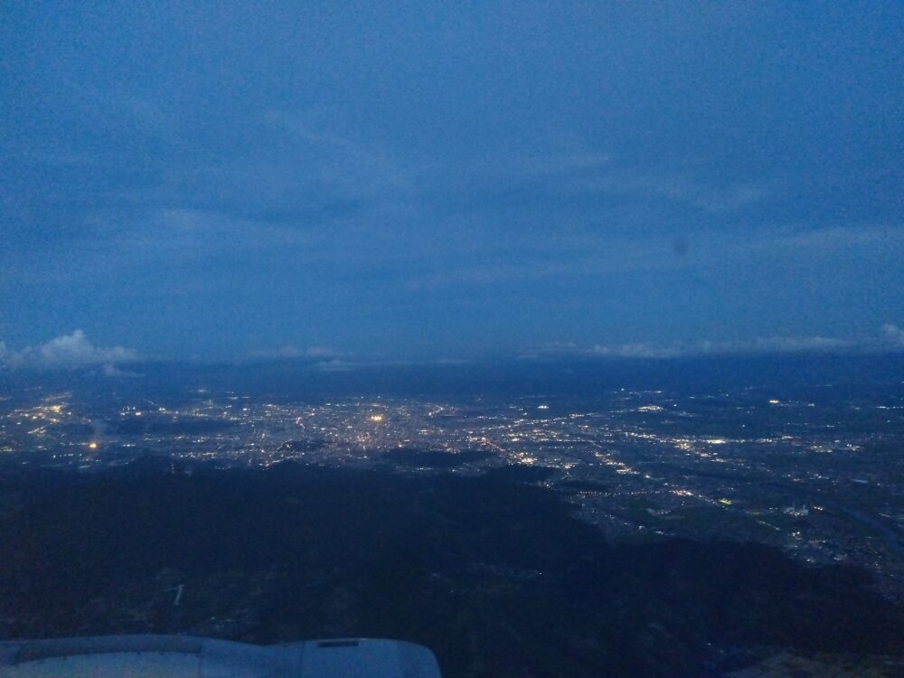 まずは本日の木曜ブログですが、先月8日夕方、成田→熊本空港行きの着陸態勢に入った飛行機の主翼前方の左窓側から、自慢の旧式スマホから写メに収めてきましたので、ご覧ください(^▽^)/ 👇