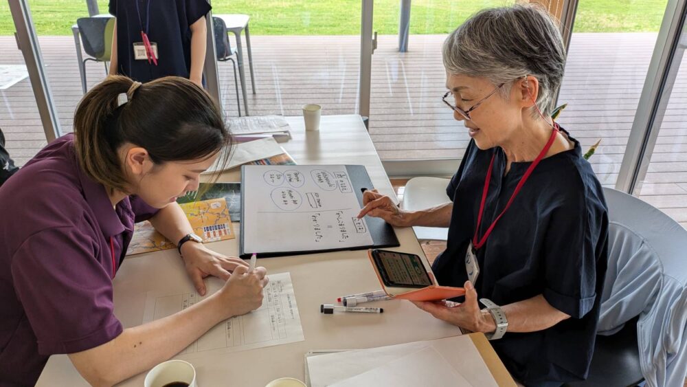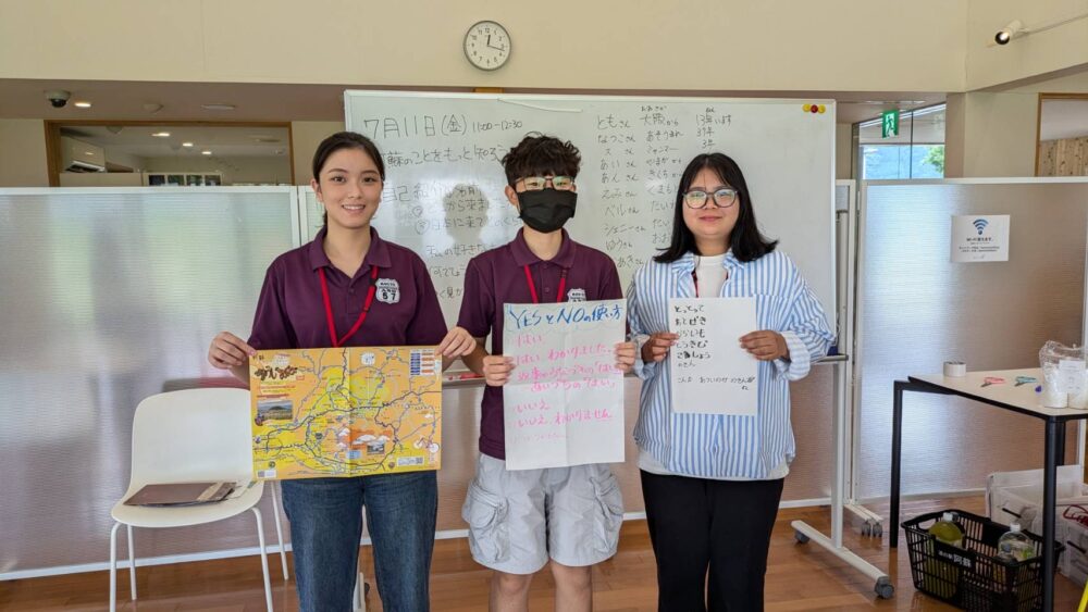 In small groups, we discussed Japanese phrases or dialect words we often hear but don’t understand in Aso. After the discussion, each group went on stage to share what they had learned. It was great to hear everyone’s discoveries—from confusing slang to useful everyday expressions.