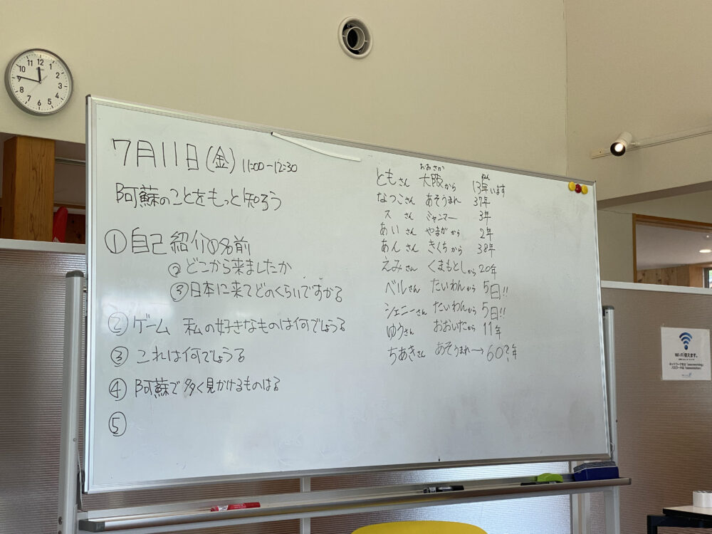 We began by introducing ourselves in Japanese—where we’re from and how long we’ve been in Aso. It was my first time speaking with local residents outside of work, and it gave me confidence to use Japanese in daily life.