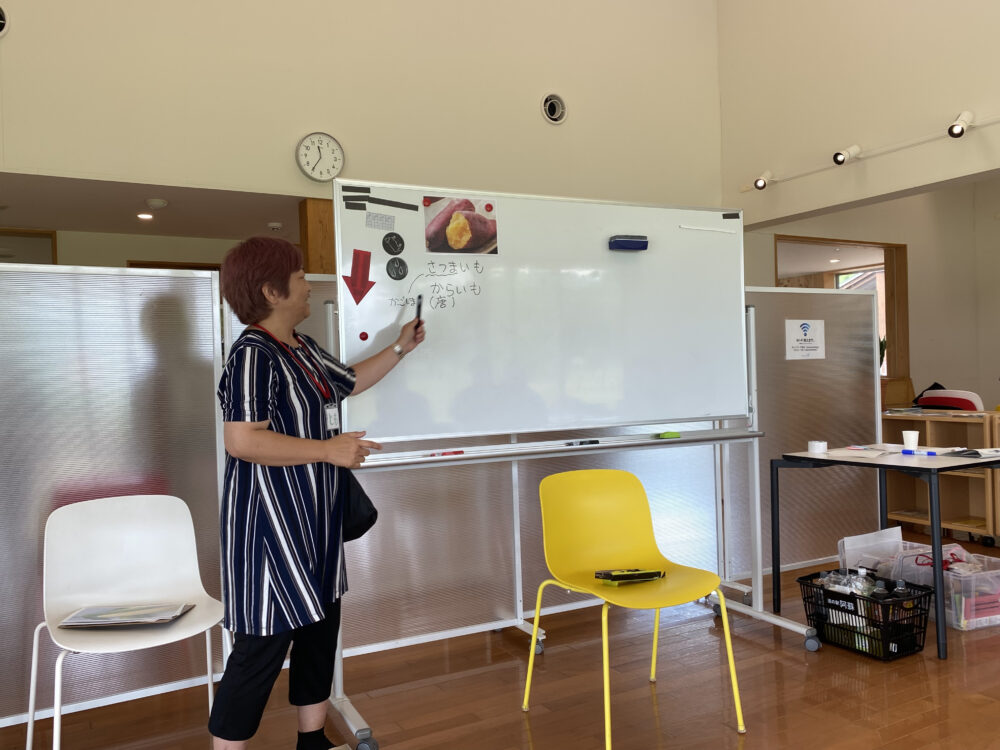 Next, we learned Japanese names for fruits and vegetables, then their Aso dialect versions. Items like corn, sweet potato, and local highland greens had totally different names depending on the region. We also discovered some agricultural specialties unique to Aso.