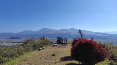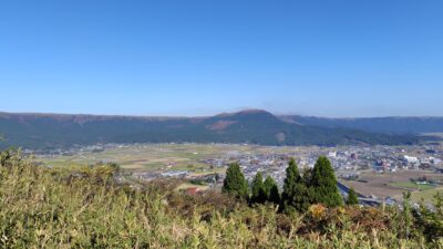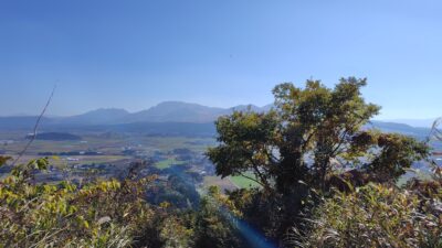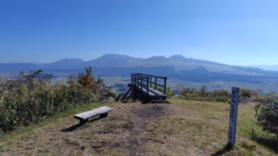 登り切ればこんな絶景が待っています。653mと大観峰より300mほど標高は低いですが、お天気よければ阿蘇の北側のカルデラと阿蘇五岳、涅槃像の姿もばっちりです。そして何より、混雑していない!