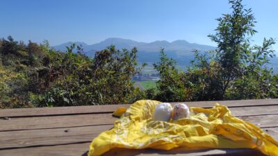 標高差は200mくらい。最後の200段の階段もなかなかですが、時々振り返れば、阿蘇山が応援してくれています! 平均ペースで30分くらいかと思います。