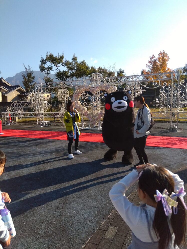 早速ですが、昨日の晴天の下、15時から阿蘇駅前の噴水広場にて、「恋人たちのイルミネーション」のオープニング・イベントの幕開けとほぼ同時に、ここ阿蘇にも熊モンが現れ、そのイベントに来られた多くの観光客の方々を存分に楽しませてくれましたので、その模様を遠くからですが、写メって来ましたので、ご覧くださいませ(^^♪