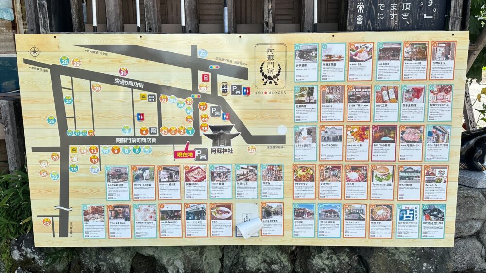 阿蘇神社のすぐ横には、たくさんのお店が立ち並ぶ「門前町商店街」があります。