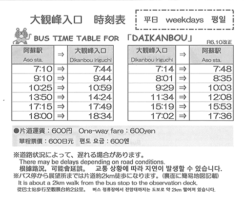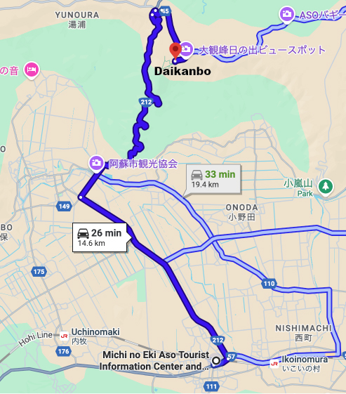 By car/taxi – approx. 26 minutes drive from Michi no Eki Aso. (Free parking available at Daikanbo)