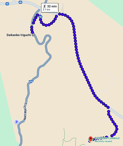 By bus (weekdays) – The bus will not stop directly at the lookout point during weekdays, but at the Daikanbo Iriguchi bus stop instead. There is a walk taking approx. 32 minutes from the bus stop to the lookout point.