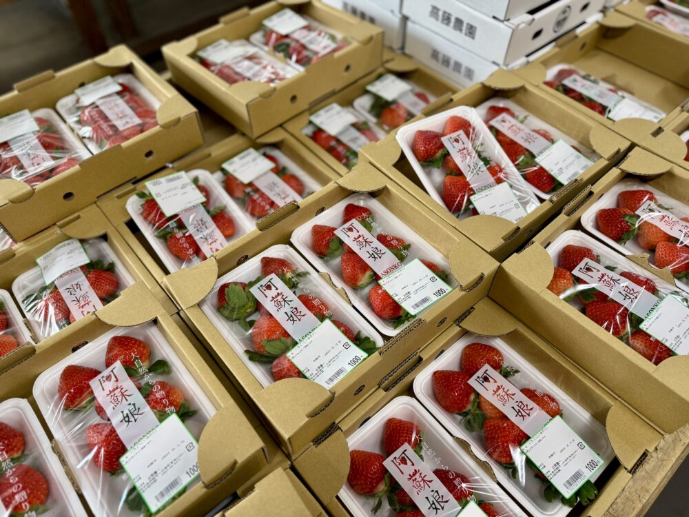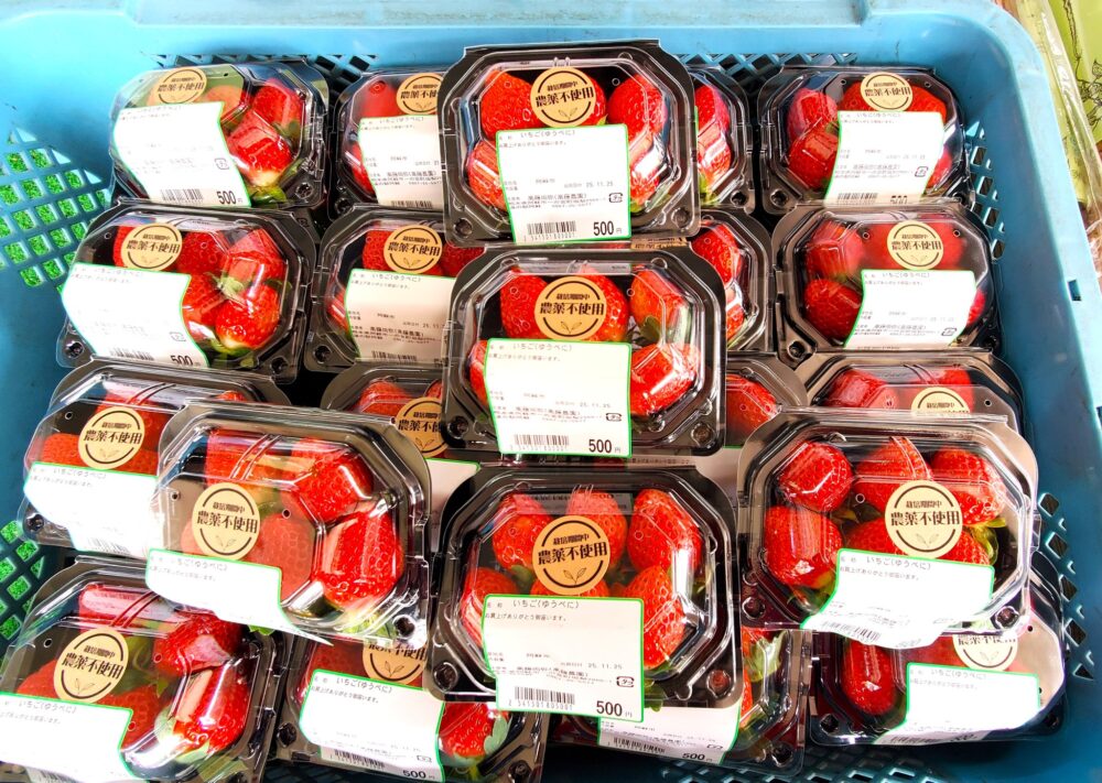 店頭のお野菜コーナーには、苺の甘い香りが広がっていますよ!