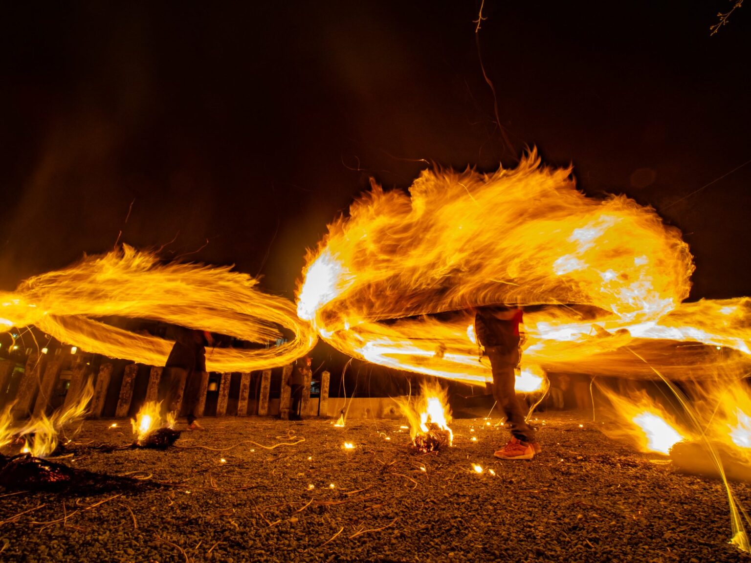 👇クライマックスの境内にて火の輪で姫君をお迎え👇
