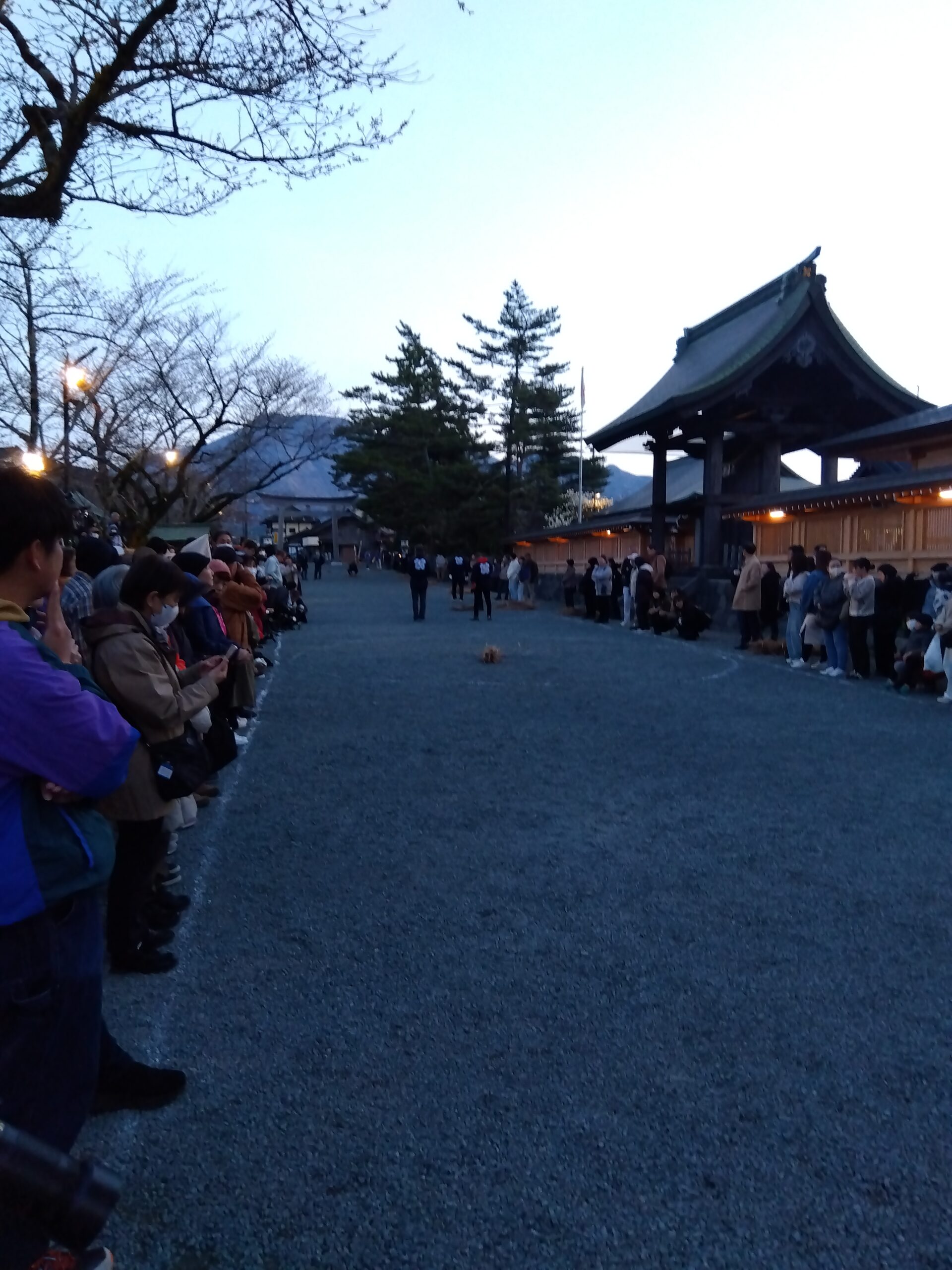 ↓興奮冷めやらない火振り神事を後に、振り返って撮った写メ↓