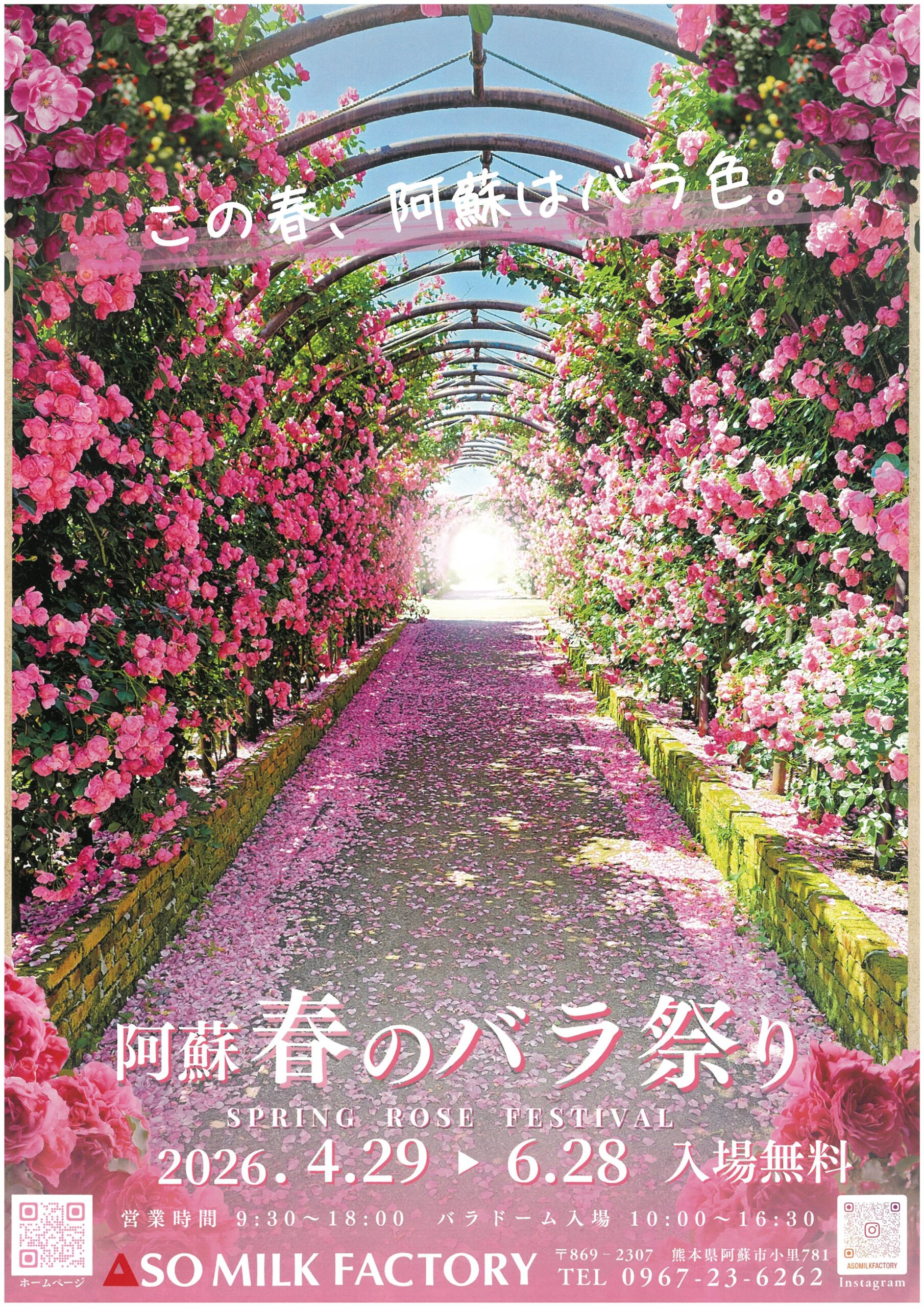 そして、春の季節に相応しいバラのトンネルも楽しめる「阿蘇ミルクファクトリー」にて、今月末から始まる”春のバラ祭り”開催を、少々早いのですが共有させて頂きますね😊😊
