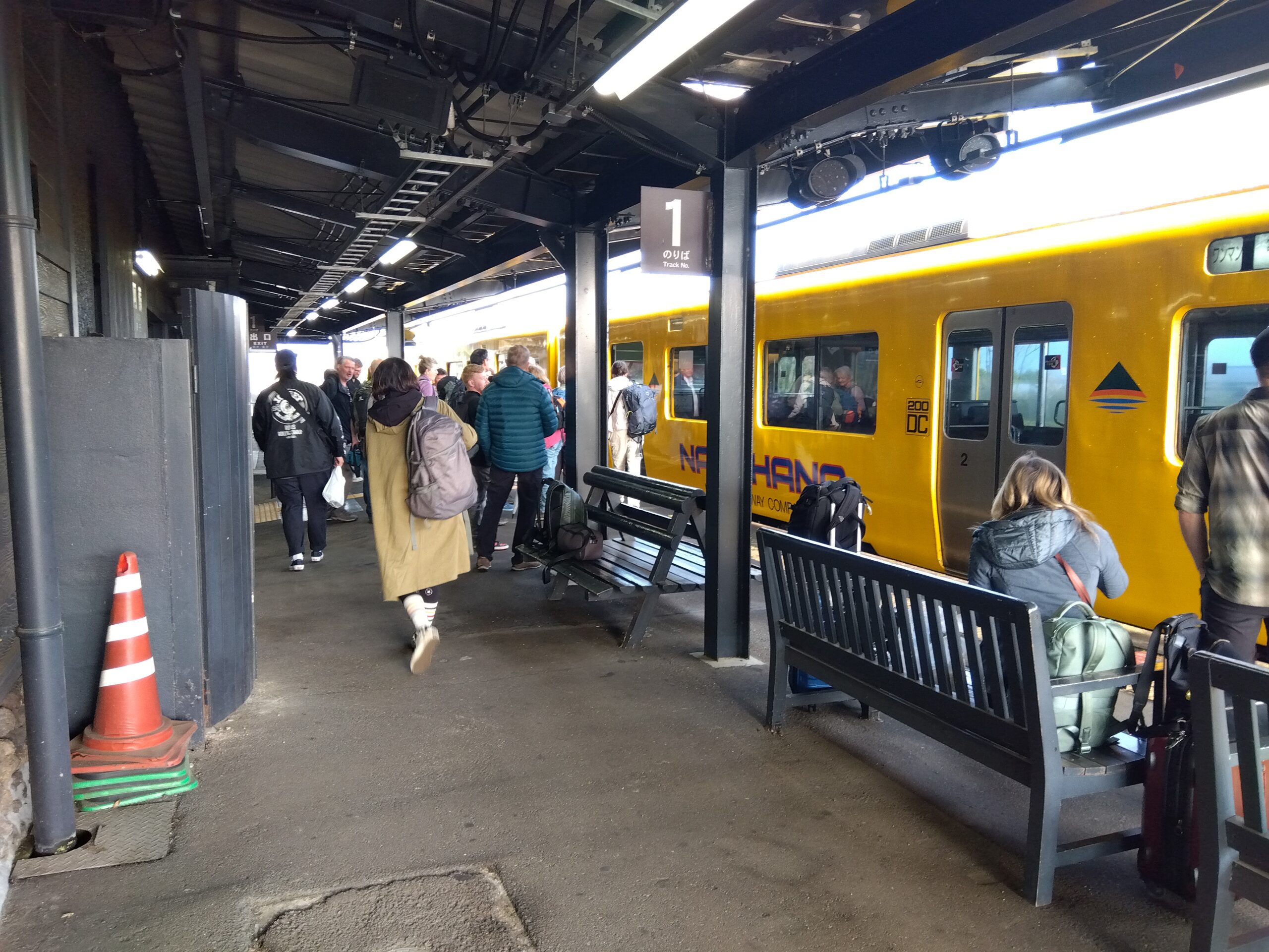 阿蘇駅到着したホームに大勢の観光客(*_*;↓